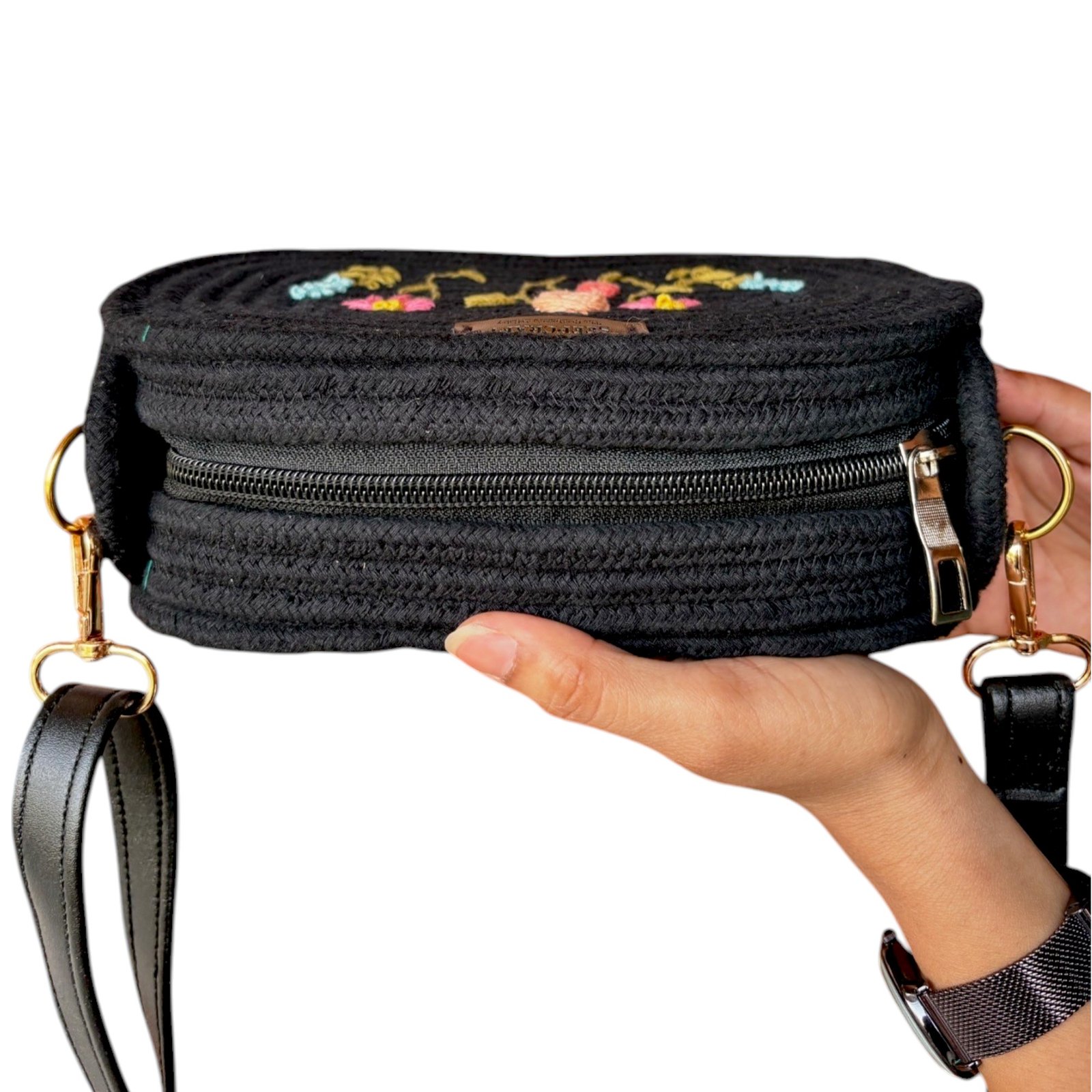 Checkout product video in Instagram – Cross body sling bag for ladies with Hand embroidery in Black color