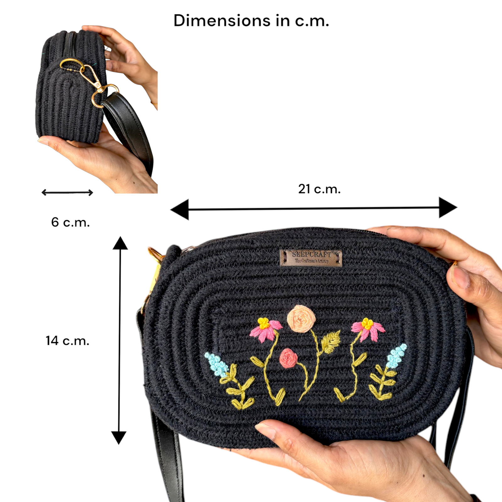 SEEPCRAFT Stylish & Premium Cross Body Sling Bag for Ladies – Black with Hand Embroidery