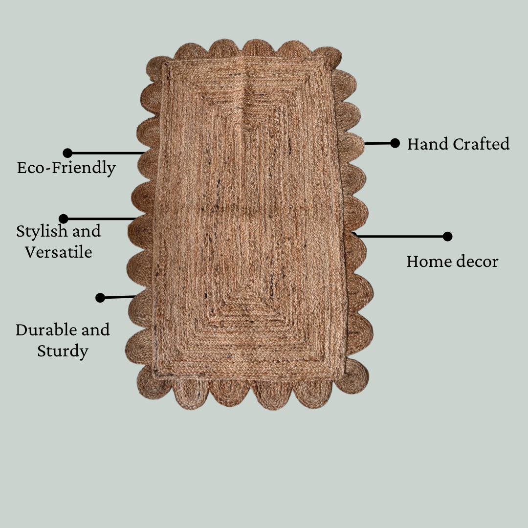 Seepcraft proudly presents its Handmade Natural Jute Rug, an exquisite piece that combines elegance with eco-friendliness. Crafted meticulously, this rug is a perfect addition to any bedroom or living room, offering both aesthetic appeal and practical functionality.