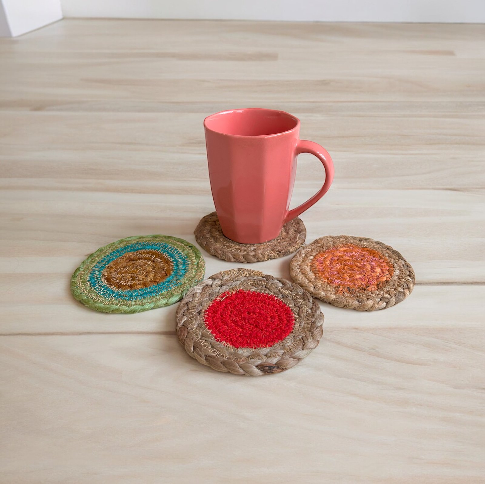 Decorative Touch: Enhance your home and office decor with these stylish jute mats and coasters at multiple locations.